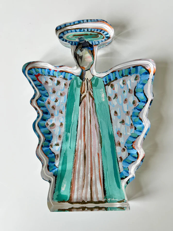 The art is affixed to a thick, weighted protective acrylic block giving a three dimensional appearance