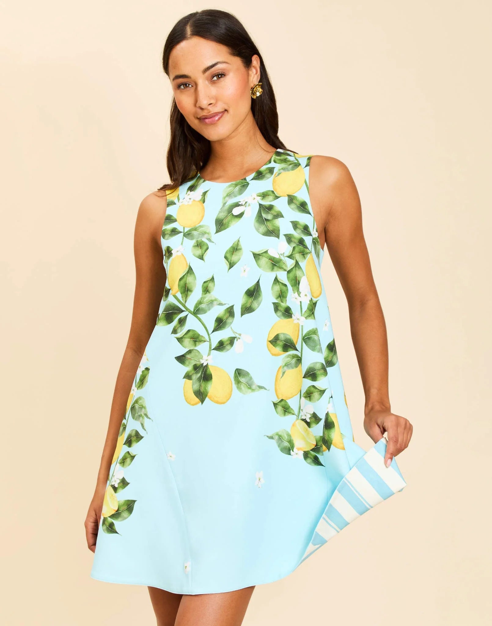- A reversible design that flips from a playful lemon print to a timeless stripe