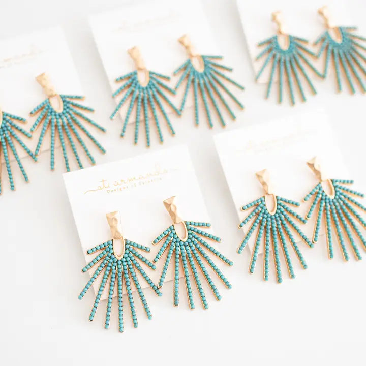 We love a good sunburst design! These turquoise and gold drops are the perfect statement piece, and look great with so many outfits. These turquoise beauties are fun all season long!