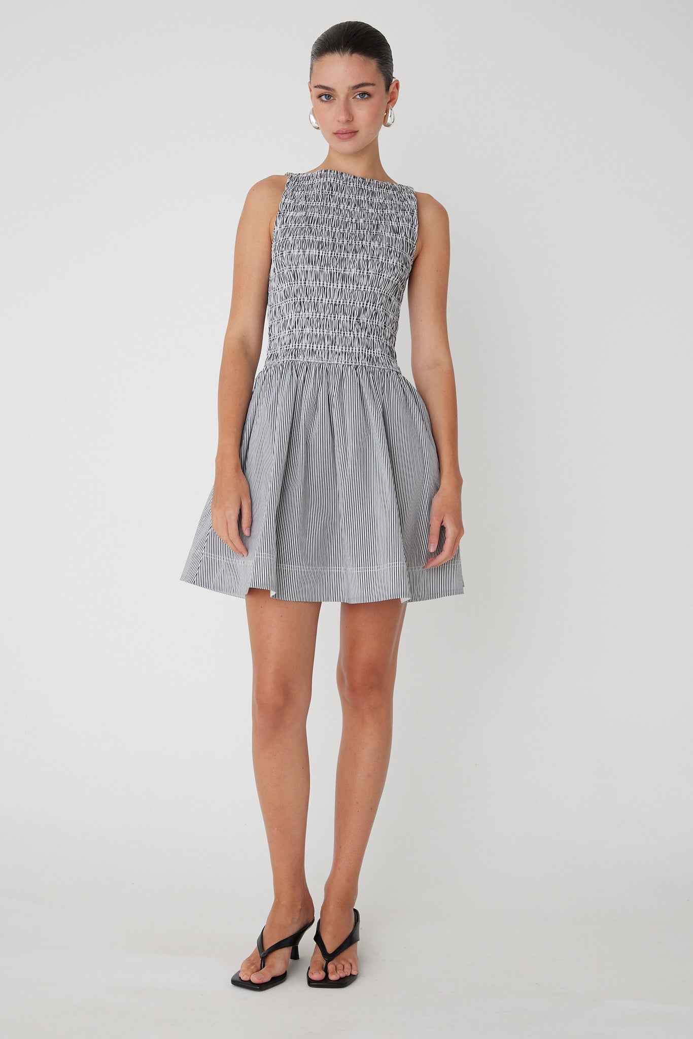 Introducing the Marisol Dress, a timeless piece that effortlessly combines elegance with comfort. This sophisticated design features a beautifully smocked bodice that gracefully contours the silhouette, paired with a generously voluminous skirt for an enchanting silhouette.